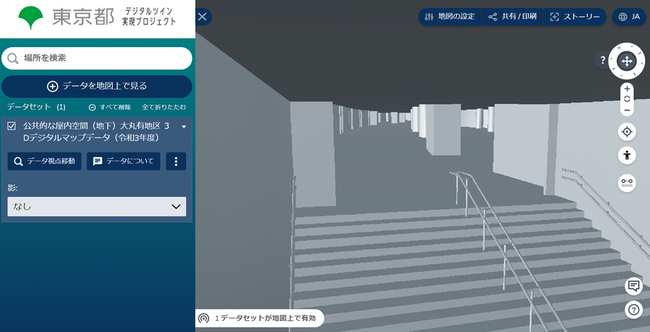 「都市の3Dデジタルマップ化プロジェクト」(都市整備局)で今年度作成した大丸有地区(大手町・丸の内・有楽町) 地下空間の3Dデジタルマップデータ