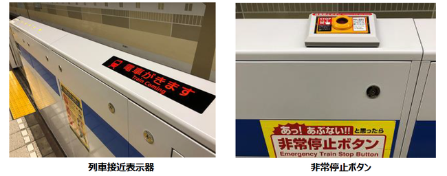 ・新たなホームドアは、列車接近表示器や非常停止ボタンを戸袋上部に設けているほか、開閉部分の一部にガラスを用いて視認性を高めています。
