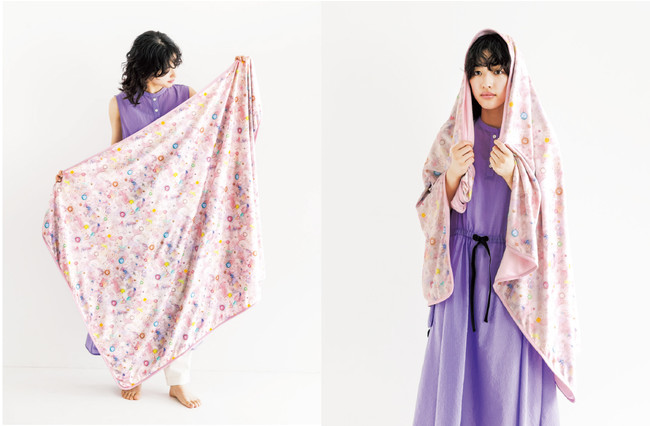 生地はさらっとしたポリエステル素材と、しっとり心地いいレーヨンパイル素材のリバーシブルです。好きな肌触りを選んで、KAWAII に包まれることができます。
