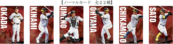 阪神甲子園球場内売店・ワゴン及び外周お弁当ワゴンで「監督・選手コラボグルメ」を1商品ご購入ごとに、阪神タイガースの監督・選手がデザインされた「限定カード(ノーマル:全22種、レア:全23種)」のうち、1枚をプレゼントいたします。なお、レアカードの「監督・選手集合 ver」はお弁当商品を購入された方のみ対象となります。