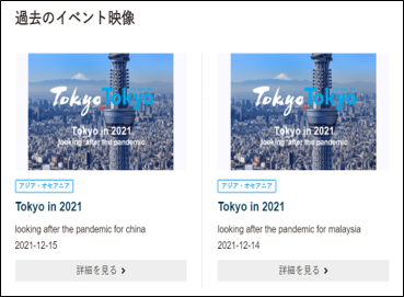 東京都や(公財)東京観光財団が開催する、市場別の商談イベントやセミナーへ参加できるほか、アーカイブ動画でいつでも視聴可能です。