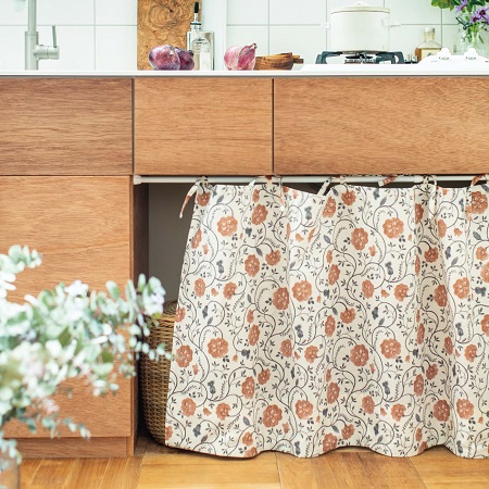 am&be 暮らしに華を添えるアンティークフラワーひも付き目隠しカフェカーテン