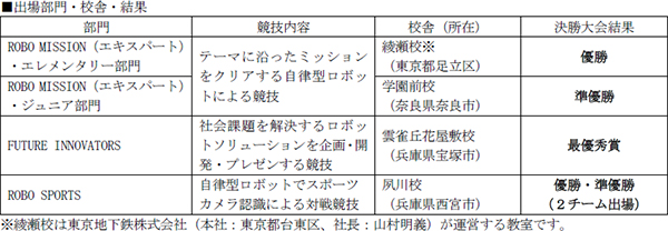 委員会が運営するロボットプログラミング教室「プログラボ」で学ぶ生徒が、8月27日に東京都港区で開催された『WRO 2023 Japan決勝大会』において好成績を残し、4部門5チーム(日本からの派遣は14チーム)が11月7日から9日までの3日間、パナマ共和国で開催される国際大会に日本代表として出場します。