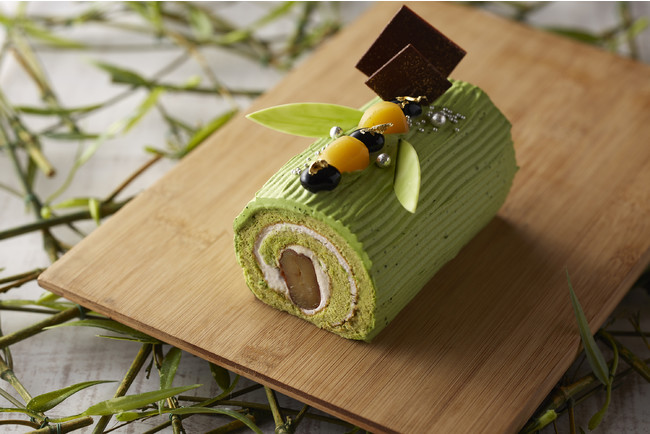 笹飾りから着想した緑色のロールケーキ。抹茶や小倉、栗など和の味を楽しみ尽くす