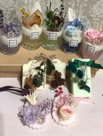 今回の体験教室では、ご自身でお好みの花を選んでアロマワックスのサシェとカップを作成していただくことができ、クリスマスプレゼントにもおすすめです。