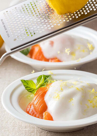 みやぎサーモンのカルパッチョ レモン大根のエスプーマ (D)