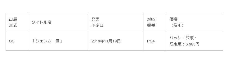 □出展形式 略式表記(TT:体験プレイ出展/SS:「TGS2019 セガゲームス・アトラス生放送!」配信)