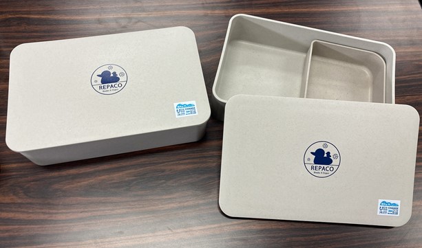 「リパコ」は、繰り返すという意味の「RE」と「箱」を掛けたもので、サービスと容器の名称です。容器はヒノキの木粉が含まれるバイオプラスチック製品で、洗って繰り返し使うことができます。
