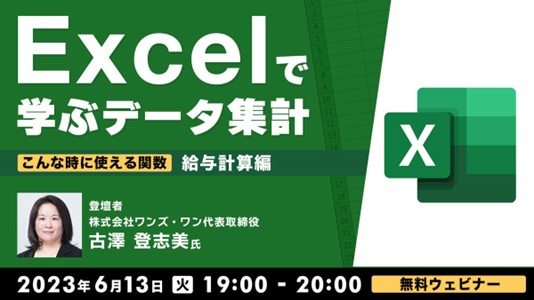【Excel中級者向け】事務職からデータ領域にステップUP!6/13(火)無料セミナー「Excelで学ぶデータ集計 こんな時に使える関数 〜給与計算編〜」