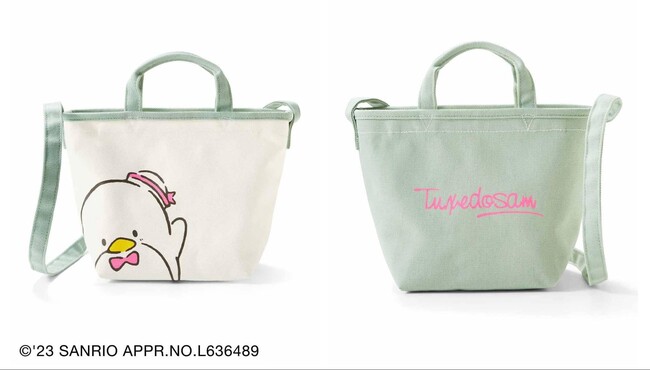 サンリオの人気キャラが大胆にプリントされた、キャンバス地のミニトートバッグです。スマホ、お財布、ポーチがちょうど入るぐらいの、ちょっとそこまでのお出かけサイズです。斜めがけできるストラップやバッグのパイピング部分は落ち着いたくすみカラーなのもおしゃれな印象です。