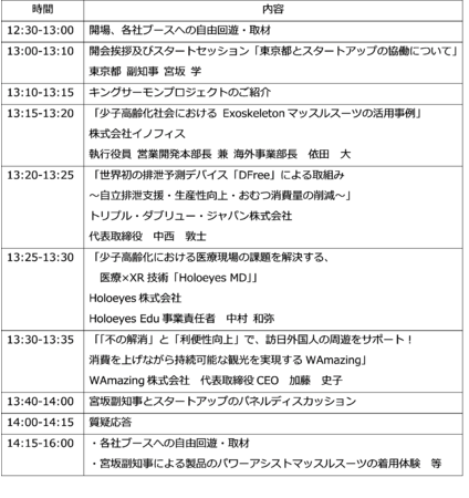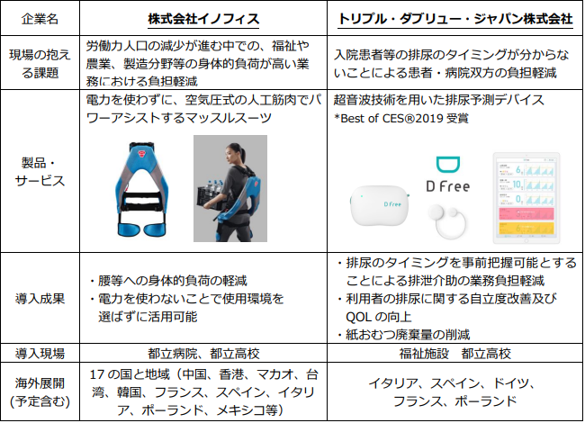 この度、本プロジェクトの1期で採択されたスタートアップ4社の製品等をご紹介するため、国内外メディア向けの体験型イベントを初開催します。このイベントでは、今後、世界の多くの国々が直面する少子高齢化等の課題解決に資するスタートアップの製品等を実際に手に触れて体験することができますので、ぜひご参加ください。