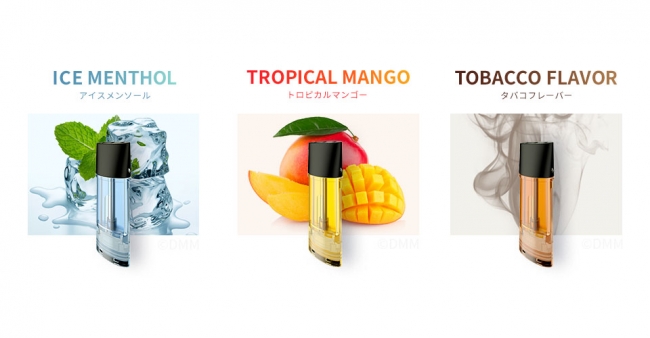 スターターキットに加え、フレーバーカートリッジを3種類(アイスメンソール、トロピカルマンゴー、タバコフレーバー)も同時に発売いたします。