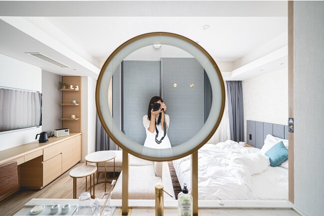 正方形で30平方メートル の広さを有する客室は仕切りを設けないことで、ゆったりとしたリビングスペースを実現し、くつろぎや癒しにこだわりました。また館内の随所に有松絞りをはじめとした名古屋の伝統工芸をモダンに取り入れており、地域に根付いてきた文化を感じていただけます。