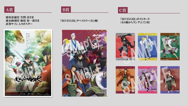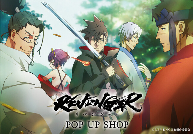 今年1月から今年1月からTOKYO MX、関西テレビ放送、BS日テレ他で放送を開始し、人気を博しているアニメ「REVENGER」(リベンジャー)。ストーリー原案・シリーズ構成には『魔法少女まどか☆マギカ』、『PSYCHO-PASSサイコパス』の虚淵玄(ニトロプラス)、監督には『忍たま乱太郎』シリーズ、『怪物事変』の藤森雅也。キャストには、雷蔵役を務める笠間淳を筆頭に、梅原裕一郎、武内駿輔、金元寿子、葉山翔太が集結。5人の「よろず利便事(りべんごと)引受け」の何でも屋を営む男たちによるダークヒーローアクション史劇です。公式サイト:https://revenger.jp公式Twitter:@Revenger_anime公式YouTube:https://www.youtube.com/channel/UCum-YmCZZfCn6KHOkrXAFwg早くも期間限定のポップアップショップの開催が決定し、新宿マルイ アネックスを皮切りに、各地で展開してまいります。新商品の販売、エポスカード会員さま限定お買上げ抽選会、スタンディパネルや作品資料の展示などの実施を予定しております。■ 商品の一例