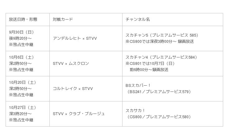<ベルギーリーグ 第9節以降 STVV放映スケジュール>