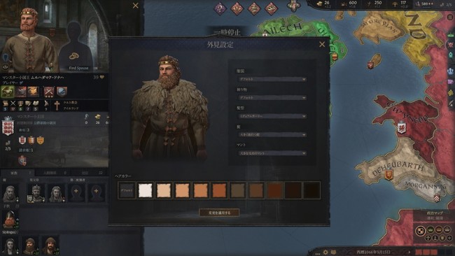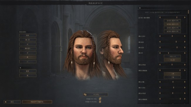 もちろん、1から領主を作成することもできます。名前や性別、信仰する宗教や領地の名前まで細かく設定可能。さらに顔の輪郭や鼻の高さだけでなく、ほうれい線や顎の角度、顔の凹凸など細部にまでこだわることができます。