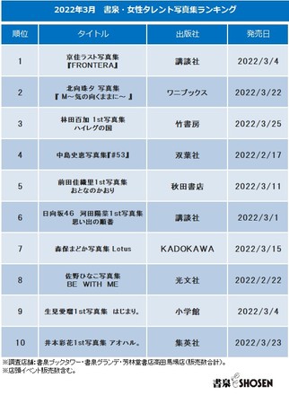 <2022年3月 書泉・女性タレント写真集売上ランキング>