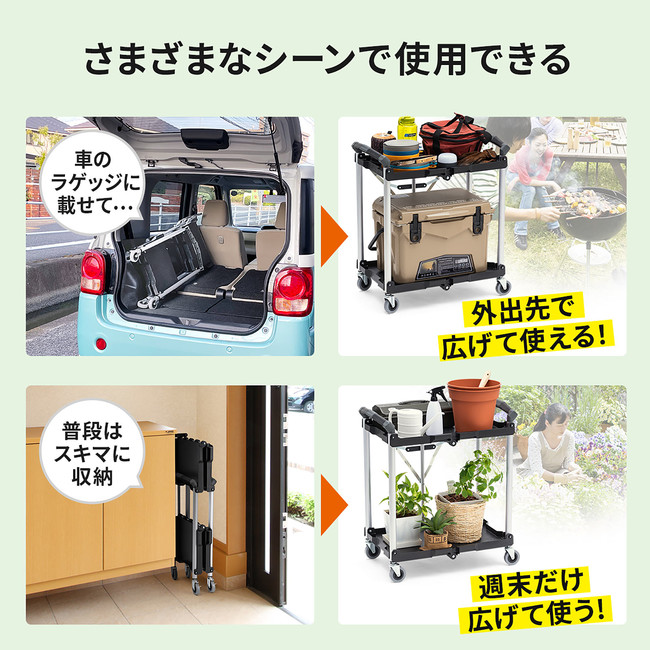 2段タイプで高さのある荷物もラクに運べる折りたたみワゴンを1月14日発売