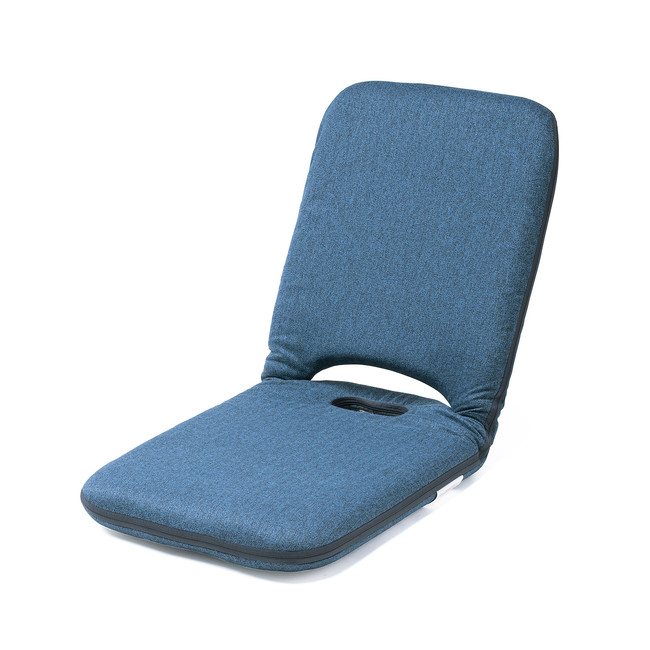 折りたたみ座椅子 ファブリック 14段階リクライニング 持ち運び可能 持ち手付き ブルー