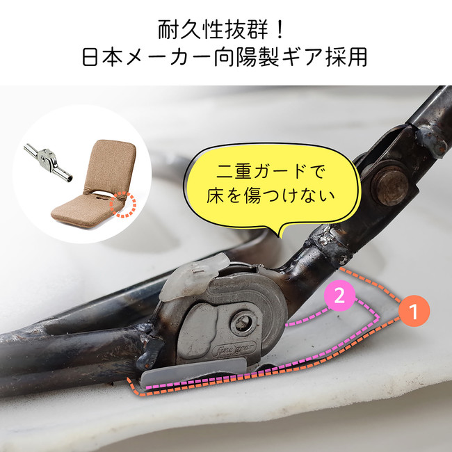 リクライニングのギアは10000回の耐久テストに合格した安心な日本メーカー向陽技研製を使用しています。