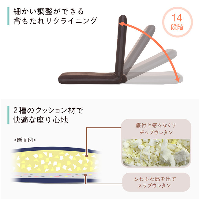 折りたたみ座椅子 ファブリック 14段階リクライニング 持ち運び可能 持ち手付き ライトブラウン