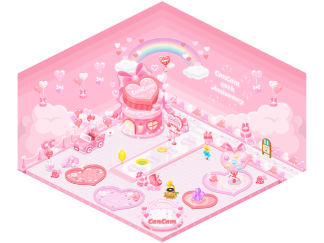 本日より、「LINE プレイ」に『CanCam』の創刊40周年を記念した公式ガーデンが登場します。今回の公式ガーデンは、ピンクとハートで彩られた世界でCanCam専属モデルのほのかさんと一緒に「恋するアイテム」コーディネートが楽しめます!期間中、公式ガーデンに訪問するだけで「恋するハートクッション」がもらえるほか、指定されたアイテムを着用して訪問した方に「CanCam・LOVE HERATガーデンツリー」や「CanCam・イベント風船LOVE HEART」をプレゼントします。ぜひCanCam公式ガーデンに遊びにきてください!