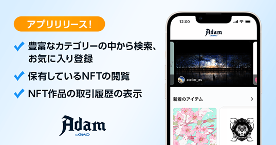 NFTマーケットプレイス「Adam byGMO」、スマホアプリ(iOS版・Android版)を提供開始!