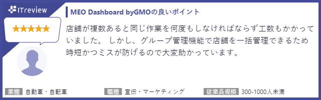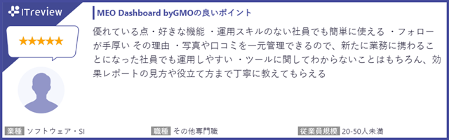 【「ITreview」に寄せられた『MEO Dashboard byGMO』利用者の声(一部抜粋)】