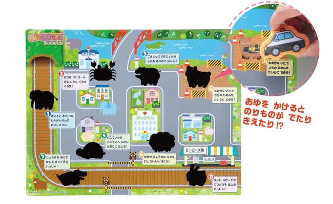 まちに現れた動物のシルエットにお湯をかけるとのりものに変身!