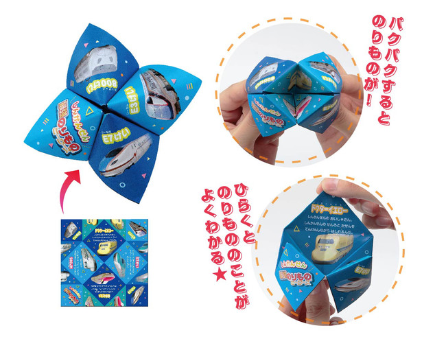 のりものぱくぱくパズルがたのしめるオリジナルのおりがみと、