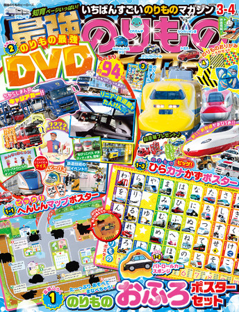 最強のりものヒーローズ3-4月号はたっぷり遊べて学べちゃう!豪華でお得な3点セットの「のりものおふろポスターセット」が付録!DVDにはキャリアカーや踏切の最新機械、のりものいっぱいの公園など大特集!