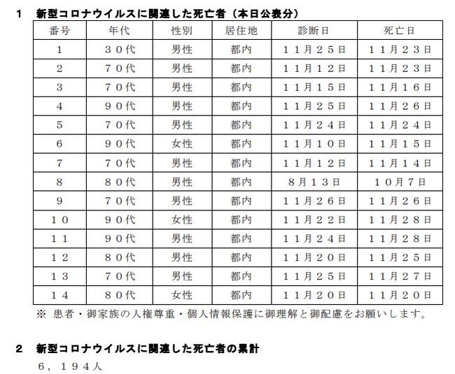 都内で新型コロナウイルスに感染した方が死亡されましたのでお知らせします。