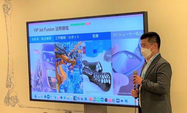 次に、HP Jet Fusionの活用領域として注力している、「自動車・輸送機関」、「工作機械・ロボット」、「医療」、「コンシューマー製品」、それぞれの分野における国内の導入事例について紹介しました。