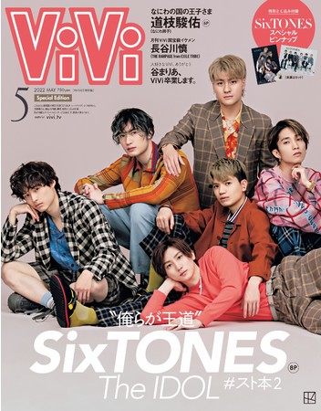 SixTONESが、男性グループ史上最速でViViの表紙にカムバック! ViVi2022年5月号(3月22日発売)特別版の表紙を飾ります。8Pにわたるカバーストーリーに加え、超スペシャルな両面ピンナップまで。インタビューもビジュアルも盛りだくさんの#スト本2 が完成しました。