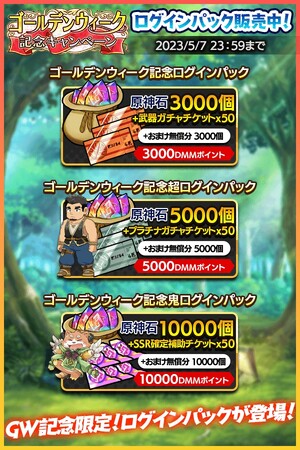 ■ゴールデンウィーク記念限定ログインパック3種登場!