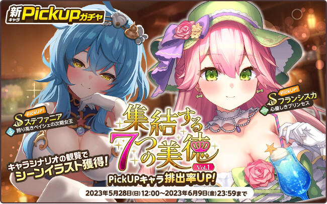 新キャラが追加されたPickUPガチャ「集結する7つの美徳Vol.1」が開催中です!