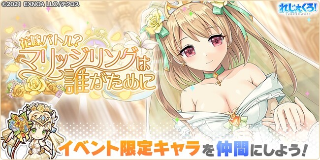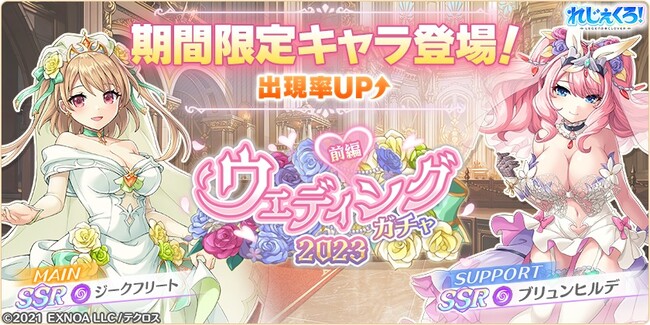 合同会社EXNOA(本社:東京都港区、CEO:村中 悠介、URL:https://games.dmm.com/)が運営するDMM GAMESにおいて、真の英雄となる王道ファンタジー『れじぇくろ!〜レジェンド・クローバー〜』(https://www.legend-clover.net/)は、ウェディングドレス姿の「ジークフリート」と「ブリュンヒルデ」が新登場。また、イベント「花嫁バトル?マリッジリングは誰がために」が開催。