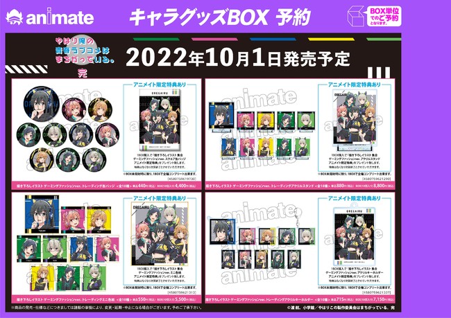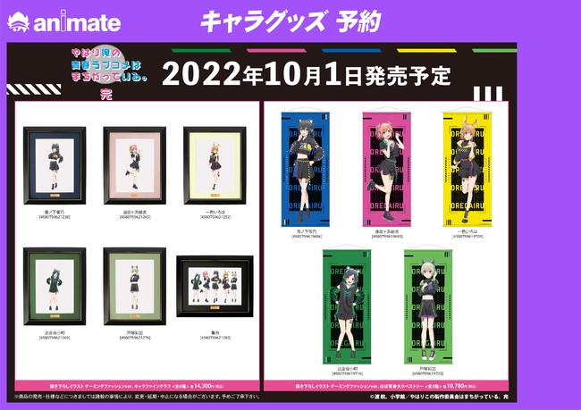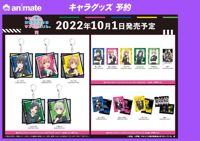 2022年10月1日(土)よりアニメイト対象店舗にて「『やはり俺の青春ラブコメはまちがっている。完』アニメイトフェア」の実施が決定いたしました。