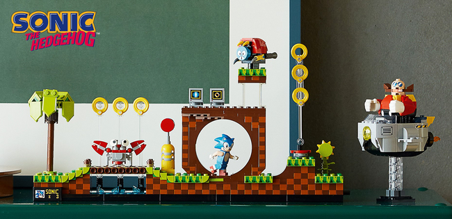『ソニック・ザ・ヘッジホッグ』は、1991年にメガドライブ(北米では「Sega Genesis」)で世界中のゲーマーの前に登場し、全世界で400万本以上販売され、爆発的な人気となったゲームソフトです。ゲームの代表的なステージである「グリーンヒルゾーン」を高速で駆け抜け、リングを手に入れながらゴールを目指す高速アクションゲームで、これまで30年以上にわたり、様々なバージョンのグリーンヒルゾーンを再現してきました。そして今回、レゴでグリーンヒルゾーンを再現できるセットが登場します。