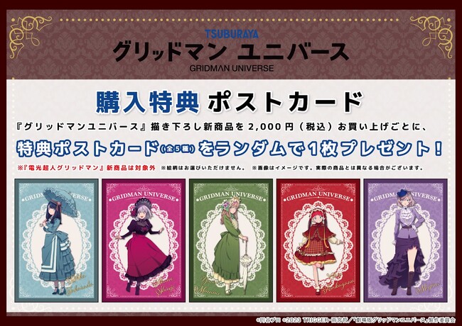 期間中、ゲーマーズオンラインショップにて『グリッドマンユニバース』描き下ろし新商品を2,000円(税込)お買い上げごとに、特典ポストカード(全5種)をランダムで1枚プレゼント!