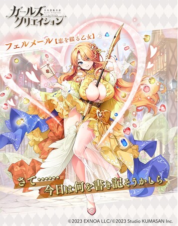合同会社EXNOA(本社:東京都港区、CEO:村中 悠介、URL:https://games.dmm.com/)が運営するDMM GAMESにおいて、「クリエイティブチーム くまさん」第4弾作品となる『ガールズクリエイション -少女藝術綺譚-』(以下、『ガールズクリエイション』)にて、イベント「青の乙女たちと恋の手紙」の開催と、フェルメール★5スタイル【恋を綴る乙女】、ロダン★5スタイル【絶望を切り開く鍵】の登場をお知らせいたします。