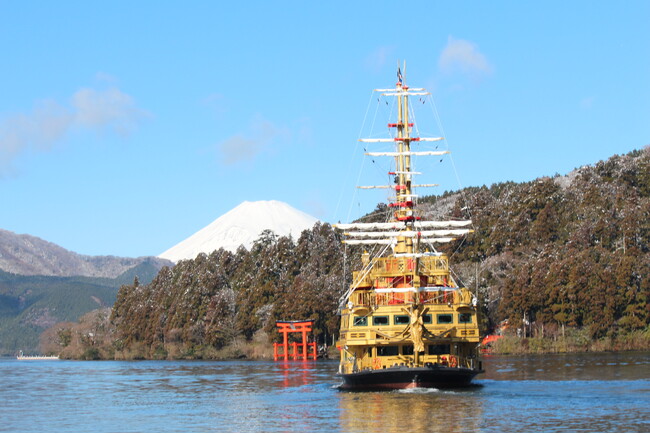 「箱根海賊船」は、桃源台港から箱根町港・元箱根港を約25〜40分で結ぶ海賊船をモチーフにしたクルーズ船です。芦ノ湖の上から美しい箱根の景観や富士山を楽しむことができます。