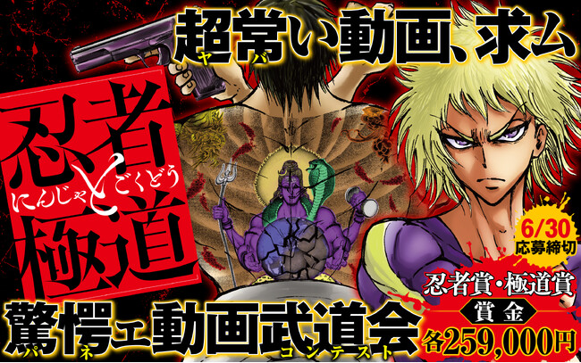 【6/30〆切】アニメ化してほしいマンガランキングにランクイン!『忍者と極道』驚愕ェ動画武道会(パネェPVコンテスト)開催決定&5/1からコミックDAYSで期間限定全話無料公開(※先読み有料話を除く)