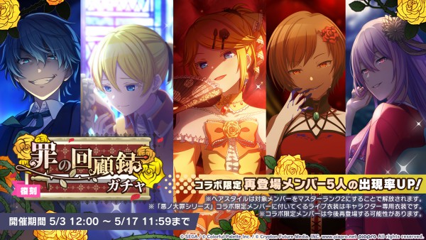 同日より、コラボガチャである「罪の回顧録ガチャ」の復刻、コラボログインキャンペーンも開催いたします。