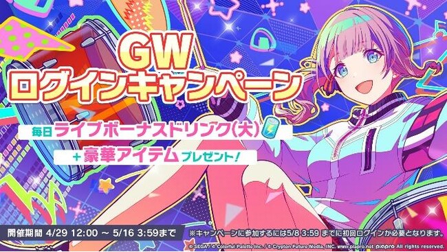 2023年4月29日(土)より、「GWログインキャンペーン」を開催いたします。キャンペーン期間中にログインした方には、最大9日間、毎日「ライブボーナスドリンク(大)」と豪華アイテムをプレゼントいたします。