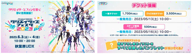 2023年6月3日(土)、4日(日)の10:00〜20:00に、秋葉原UDXにて開催される「プロセカクリエイターズフェスタ2023」の一般チケットの各種発売日程が決定しました。