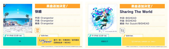 「ボカコレ 2023 春」と『プロジェクトセカイ』のコラボ企画「ボカセカ」の採用作品、「新人類」(作詞・作曲:まらしぃ&じん)と、「ずんだパーリナイ」(作詞・作曲:なみぐる)をリズムゲーム楽曲に追加することが決定いたしました。