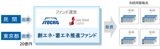 その取組の一環として、東京都は、再生可能エネルギーの導入拡大に資する系統用蓄電池を主な投資先とする「創エネ・蓄エネ推進ファンド」を創設します。