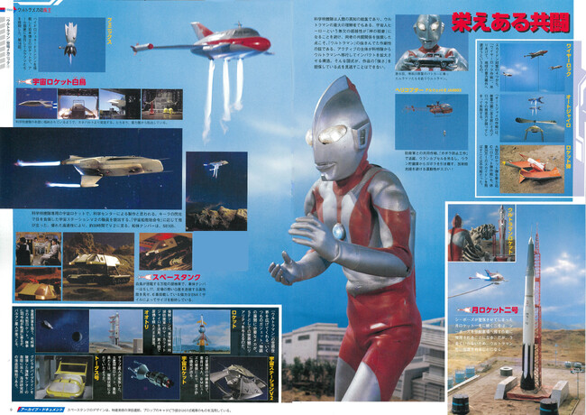 『ウルトラマン』のジェットビートル、『ウルトラセブン』のウルトラホーク1号、『帰ってきたウルトラマン』のマットアロー1号、『ウルトラマンA』のタックファルコン、『ウルトラマンレオ』のマックロディなどの昭和の傑作メカは、独創的なフォルムがたまりません。