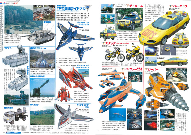 ウルトラメカの歴史は、防衛チームの歴史でもあります。オレンジ色のコスチュームが印象的だった科学特捜隊から、宇宙からの侵略者との戦いを繰り広げるウルトラ警備隊、怪獣と戦う専門家であるMAT、そしてTAC、ZAT、MAC、UGMと、チームも進化していきます。